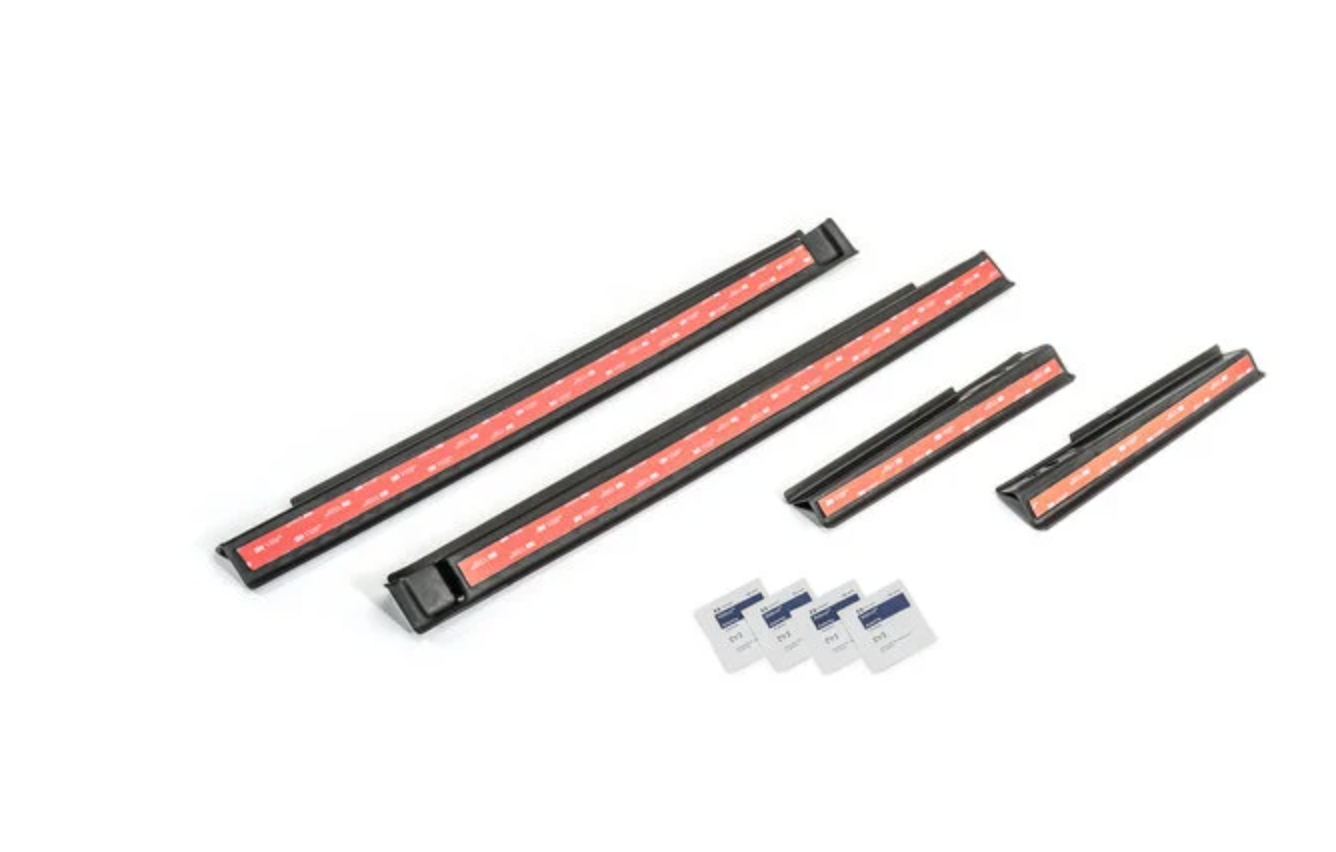 Prevent paint scuffs and chips to your lower door sills or cover up any existing damage. Our injection molded entry guards provide a precision fit and installation takes just minutes. The black TPE thermo plastic elastomer) construction is virtually indestructible to last a lifetime of abuse. The diamond tread pattern compliments all interior trim and 3M peel and stick attachment tape allows quick installation over your factory sills. Make a statement every time your door is opened and appreciate a more finished look to your interior. Backed by our Quadratec 3 Year Limited Warranty. Made in USA.