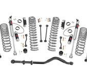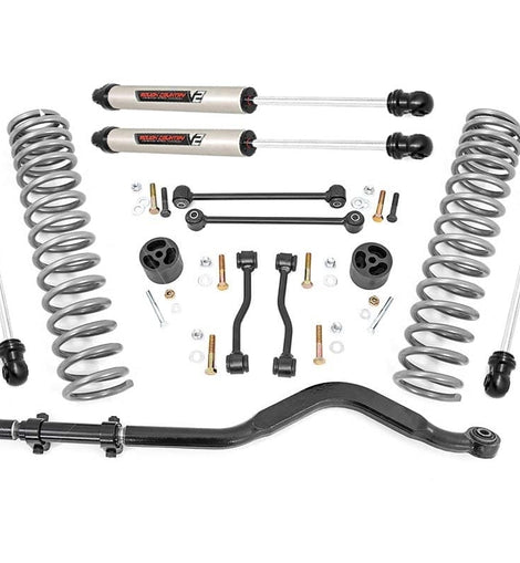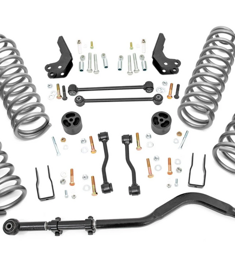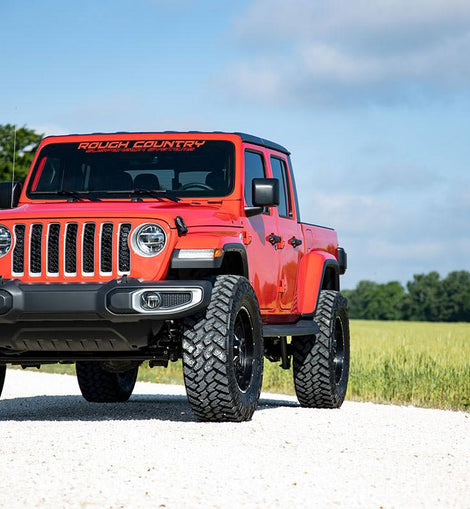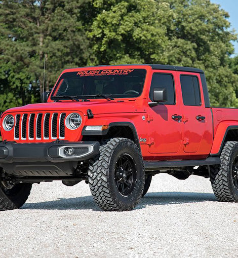 Transform Your Gladiator: Take your Jeep Gladiator JT to the next level with Rough Country's 3.5-inch Suspension Lift Kit. Designed for both adventure seekers and daily drivers, this kit delivers legendary off-road performance while maintaining smooth, confident on-road handling.Conquer Any Terrain with Extra Clearance: Gain the ground clearance you need to tackle rocky trails, deep ruts, and uneven terrain with ease. With room to run up to 37-inch tires, your Gladiator will turn heads with a bold, aggressive stance that commands attention on and off the road.Perfectly Level Stance: Eliminate that factory nose-down look with a front-to-rear level lift. This balanced setup not only enhances your Gladiator's appearance but also provides a more stable and predictable ride over any surface.Optimized Coil Spring Performance: Featuring OEM-tuned coil springs, this kit delivers exceptional ride comfort and precise handling. Dual-rate spring technology enhances load support and off-road stability, ensuring your Jeep performs flawlessly whether you're cruising highways or crawling over rocks.Heavy-Duty Forged Track Bar: Keep your axles perfectly centered with our solid forged steel track bar and rear track bar bracket. Boasting a massive 1.25-inch outside diameter and durable OEM-style rubber bushings, it provides unmatched strength and long-lasting performance against the toughest terrain.Quick and Hassle-Free Installation: No need to spend a full weekend in the garage. This lift kit is designed for a straightforward, bolt-on installation, so you can get back to what really matters, hitting the trails.Custom Shock Options for Every Adventure: Tailor your ride to your driving style with multiple shock options, including nitrogen-charged N3, V2, M1 Monotube, or our premium M1R shocks. Whether you want maximum off-road control or all-around versatility, Rough Country lets you build your lift your way.With Rough Country's 3.5-inch Suspension Lift Kit, you're not just upgrading your Jeep, you're unlocking its full off-road potential. Take command of the trail, enjoy a smoother ride, and give your Gladiator the presence it deserves.
