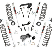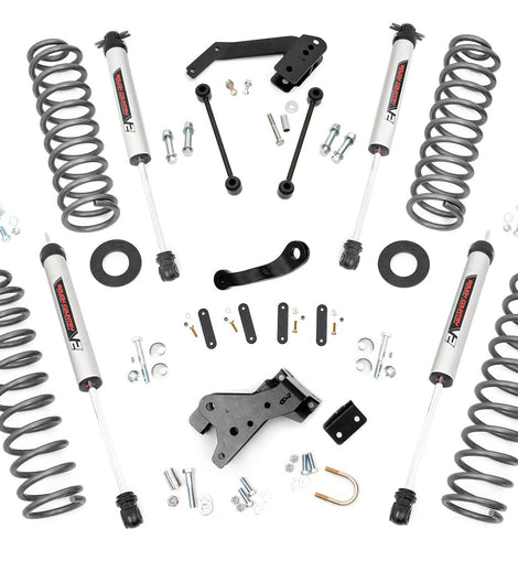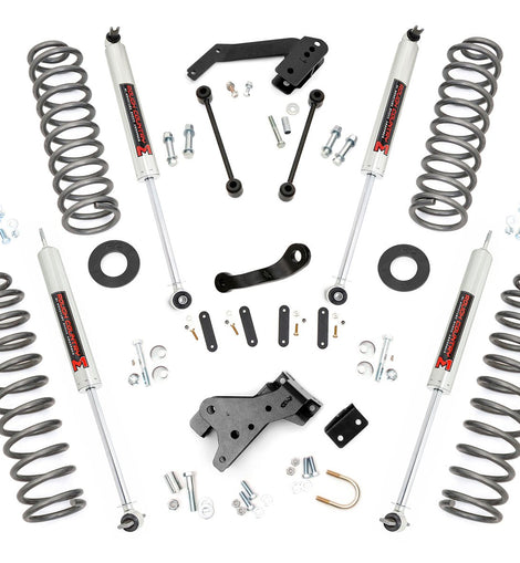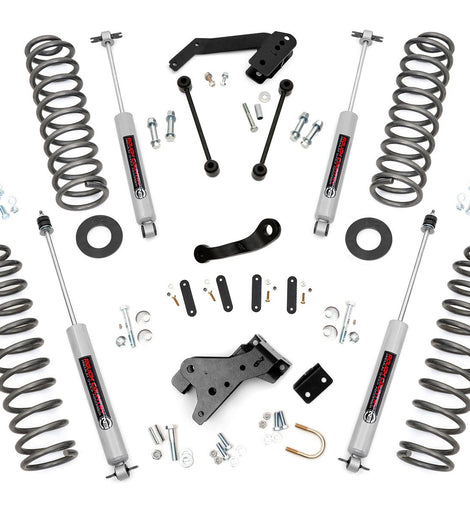 Total transformation for your Jeep starts with Rough Country's 4-Inch Suspension Lift Kit. This all-inclusive upgrade delivers aggressive styling, enhanced ground clearance, and the rugged performance you need to conquer any trail with confidence.Engineered for Superior Suspension Geometry: Lifted coil springs pair with coil correction plates that adjust the rear coil spring angle by 10 degrees. This design improves suspension efficiency, reduces component wear, and optimizes vibration dampening across rough terrain.Custom Shock Options: Tailor your ride with nitrogen-charged N3 shocks, V2, M1 Monotube, or premium M1R shocks. Whether you want balanced on-road comfort or elite off-road control, this kit lets you fine-tune performance to your driving style.Clears Up to 35-Inch Tires: Gain the clearance to run up to 35-inch tires, giving your Jeep a commanding stance and greater off-road capability.Backed by Rough Country's Limited Lifetime Warranty: Drive with confidence knowing your investment is protected with Rough Country's limited lifetime replacement warranty.