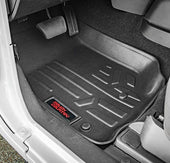 These contoured floor mats are laser-measured for each make and model; designed to be a precise fit that grips the carpet and stays put. An aggressive looking textured surface gives your muddy shoes plenty of traction and looks great inside the vehicle.