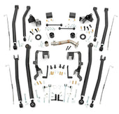 Transform Your Suspension: Upgrade your Rough Country four or six-inch lift kit into a full-fledged, high-performance 4-link Long Arm setup for unparalleled capability and off-road confidence.Unmatched Flex and Clearance: Experience incredible axle articulation and impressive ground clearance without the hefty price tag of a completely new kit.Complete 4-Link Control: This upgrade includes a full set of front and rear upper and lower adjustable control arms, giving you precise control over wheelbase and pinion angle adjustments.Rugged Durability: Each control arm is crafted from heavy-wall DOM tubing and features Rough Country's adjustable flex joints with durable OEM-style rubber bushings, ensuring long-lasting flex and performance.Built for Strength: All brackets are fabricated from thick 1/4-inch high tensile strength plate steel for maximum durability and reliability under extreme conditions.Easy, No-Weld Installation: Designed for a faster, hassle-free install with no welding required and no need to remove the factory crossmember.Complete Installation Kit: Includes extended stainless steel brake lines and coil correction plates for a seamless and efficient upgrade process.Peace of Mind Guarantee: Backed by Rough Country's Lifetime Replacement Guarantee for confidence and lasting value.